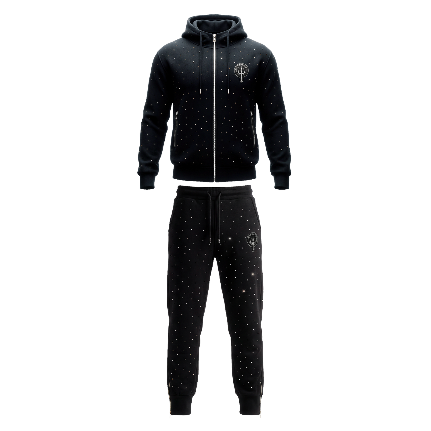 • Ensemble de survêtement en coton, composé du haut et du bas intégrant chacun des strass brillantes